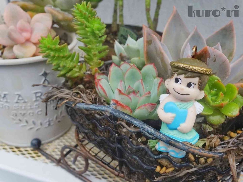 多肉植物達の仲間いりして、嬉しそうな笑顔を見せるポコちゃん!