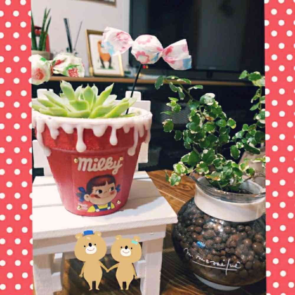 ペコちゃんの赤い鉢かわいいね〜(*゚∀゚*)