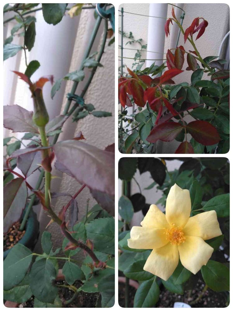 元職場のおじさまが挿し木してプレゼントしてくれたバラに蕾が出来ていました。(写真左)