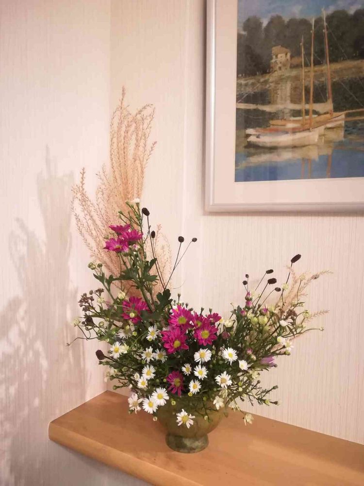 とりあえず花瓶に入れておいた残り花が、やっと飾れました。楽しみにご覧いただき嬉しいです😆ありがとうございます!