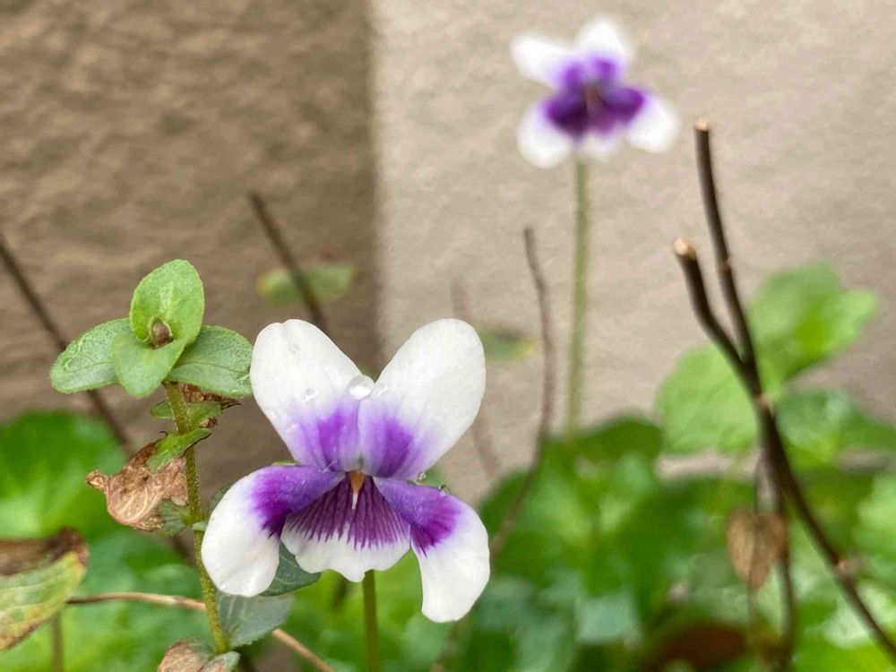 そうです、パンダスミレには忘れた頃にポツリと咲いている可愛らしさがありますよね。今の季節はニョキニョキと花茎を伸ばしていくつも咲いています💜ツルなのでハンギングなどにすると長く垂れ下がってその先に花が咲いたりしていますよ🐼