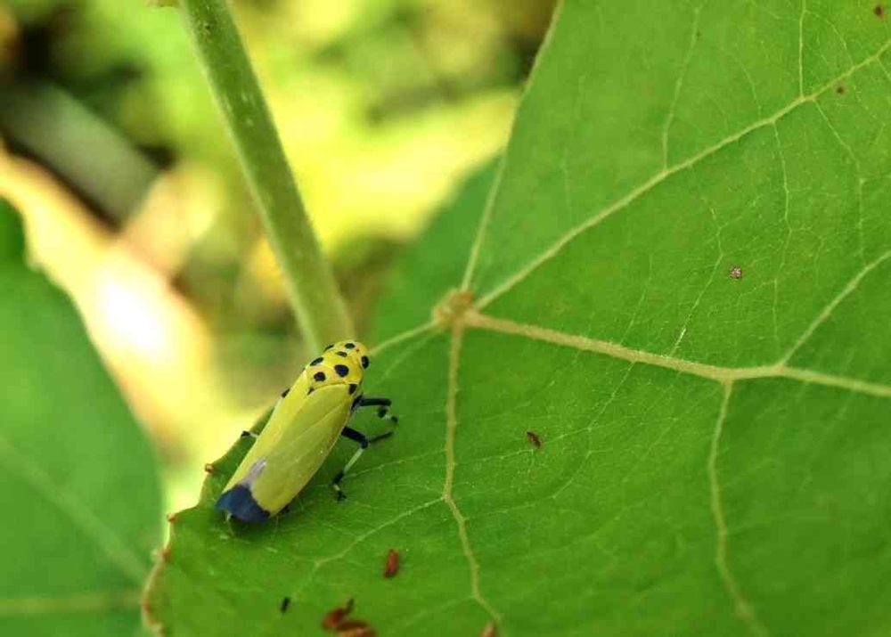 動きが面白く、ヨコバイの名前の通りササッと横移動して素早く葉の裏に隠れる