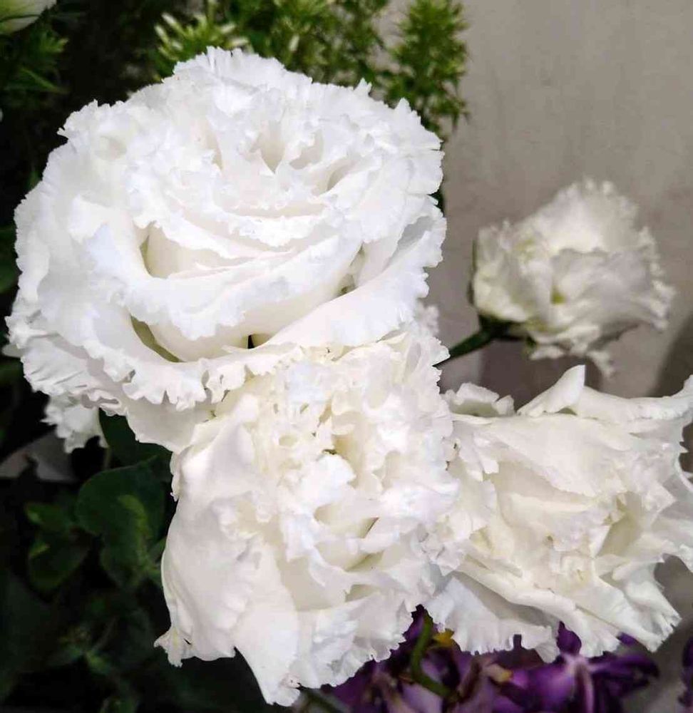 真っ白な八重咲きトルコキキョウ ボンボヤージュの花、とても綺麗です✨✨