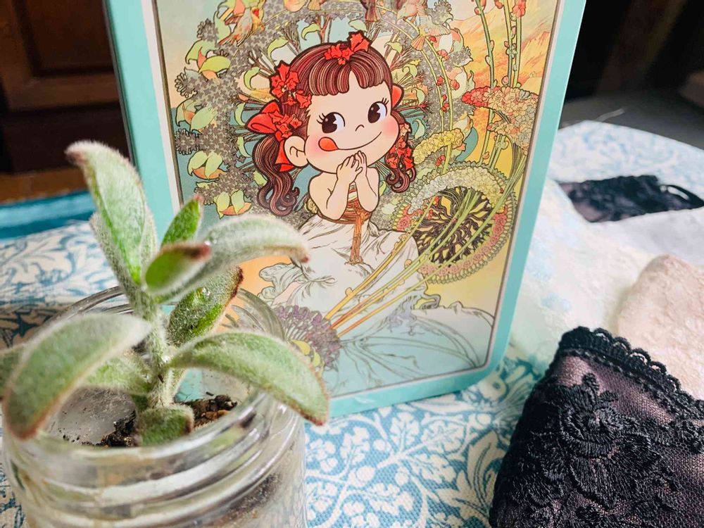 可愛いペコちゃん缶に🐰ちゃんがステキ‼️