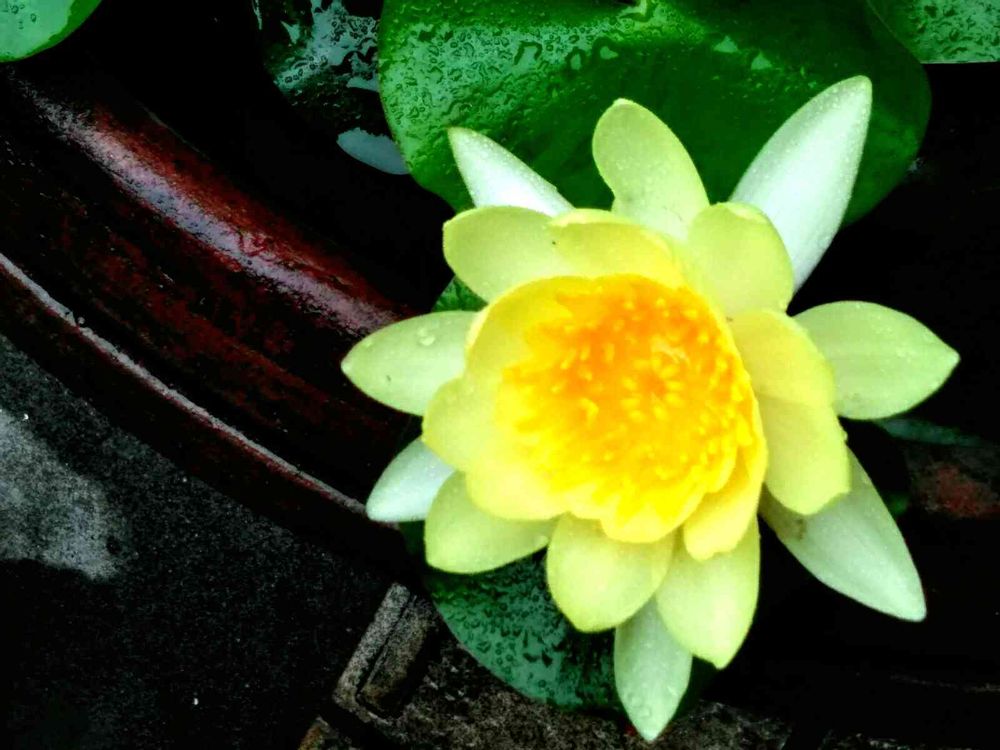 知人宅の睡蓮鉢に咲く、睡蓮です。