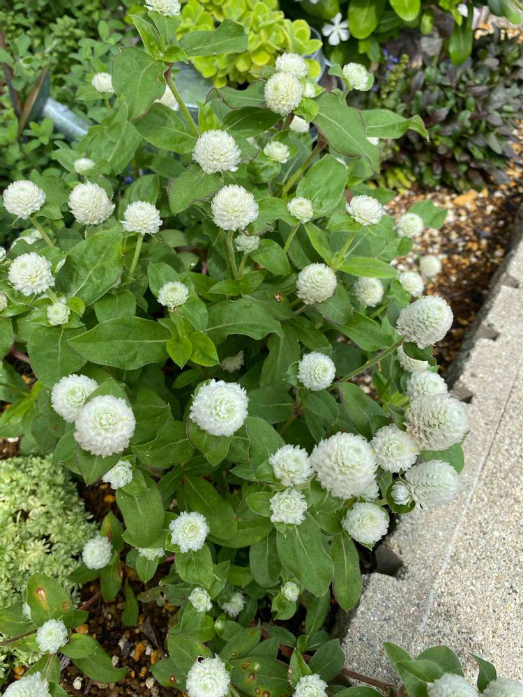 実家の地植えはなぜか全ての植物が巨大化するため、グリーンカバーを中心に改造計画中‼️でもでも、お花がやっぱり植えたい‼️と、真夏に高さ10センチほどの100円の千日紅を購入して2株だけポツリと♡あぁーかわいい❤️って思ってたけれど、枯れたお花から出てくる脇芽が、、、😱😱