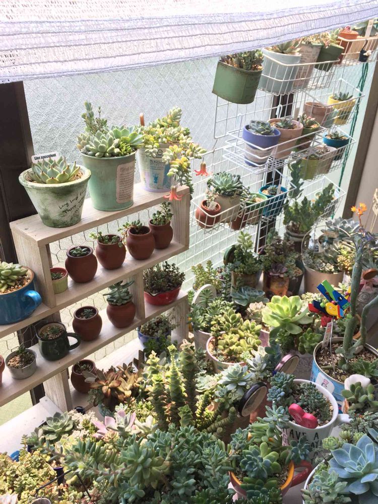 いい感じの遮光で多肉ちゃん達も日光浴出来てていいね♬*