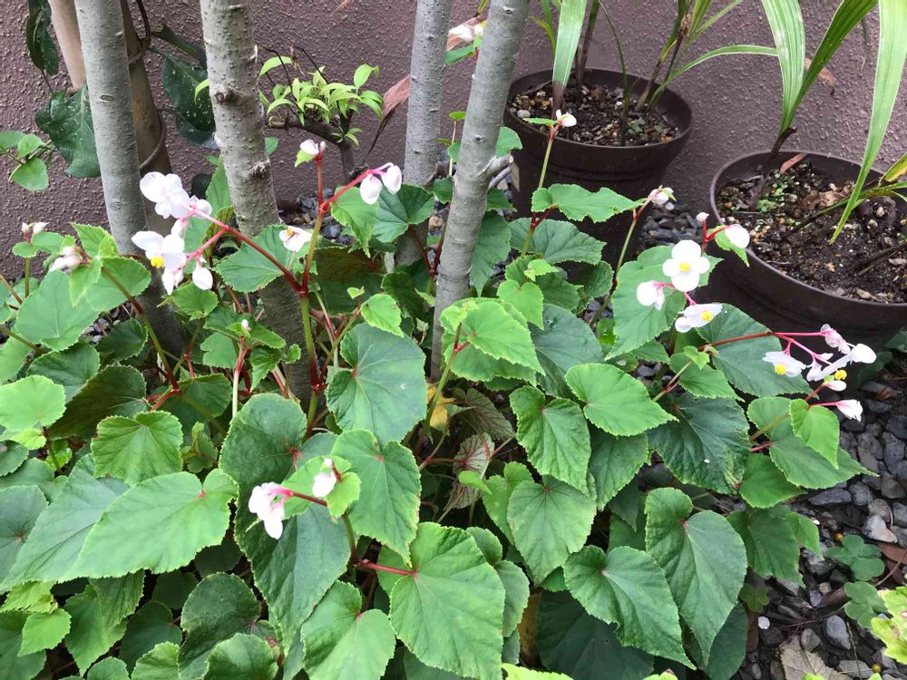今年の夏の長雨、猛暑でベゴニアの鉢植えも悲惨な状況ですが、白の秋海棠はイイ感じに育ってくれました。