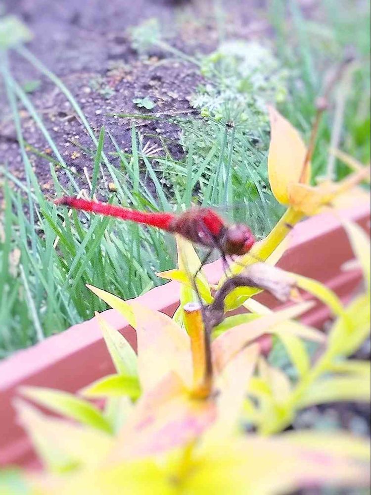 こちらは、顔まで真っ赤な綺麗なトンボさん。