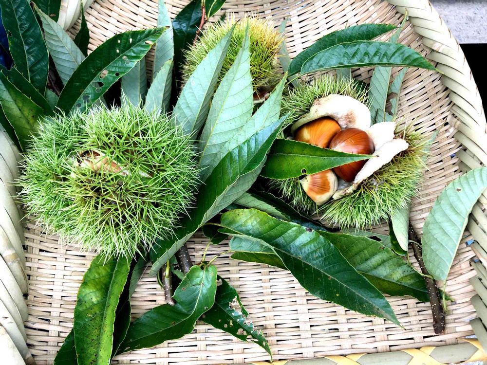 イガがぱっくり割れて、中から栗が顔を出しています。