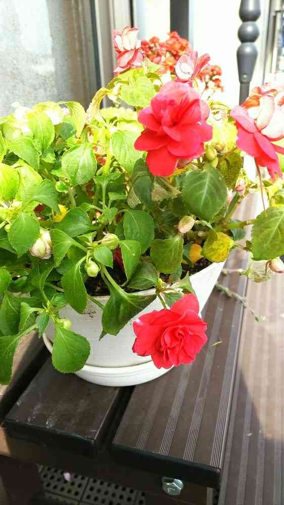 バルコニー/ベランダ,カリフォルニアローズ フィエスタ スパークラーチェリー,カリフォルニアローズ フィエスタ アップルブロッサムの投稿画像