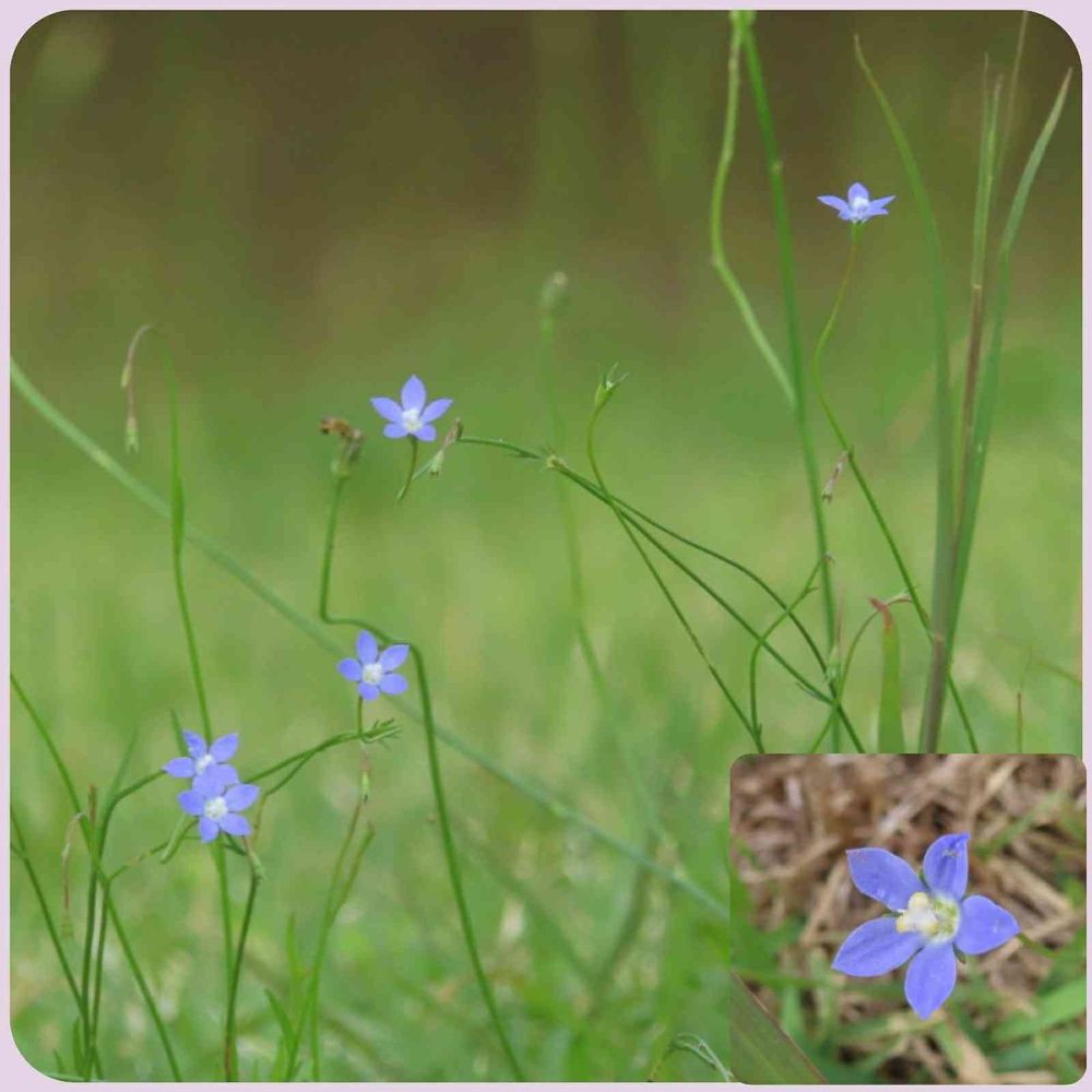 讃岐まんのう公園の草原、小さなヒナギキョウが風に揺られて可愛いらしく咲いていました。