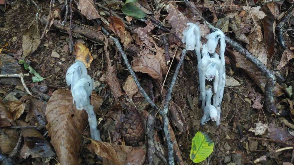 日本に見られるシャクジョウソウ科の植物(ギンリョウソウモドキ、シャクジョウソウ、ギンリョウソウ)は菌従属栄養植物といって、キノコに寄生して栄養を補っています。