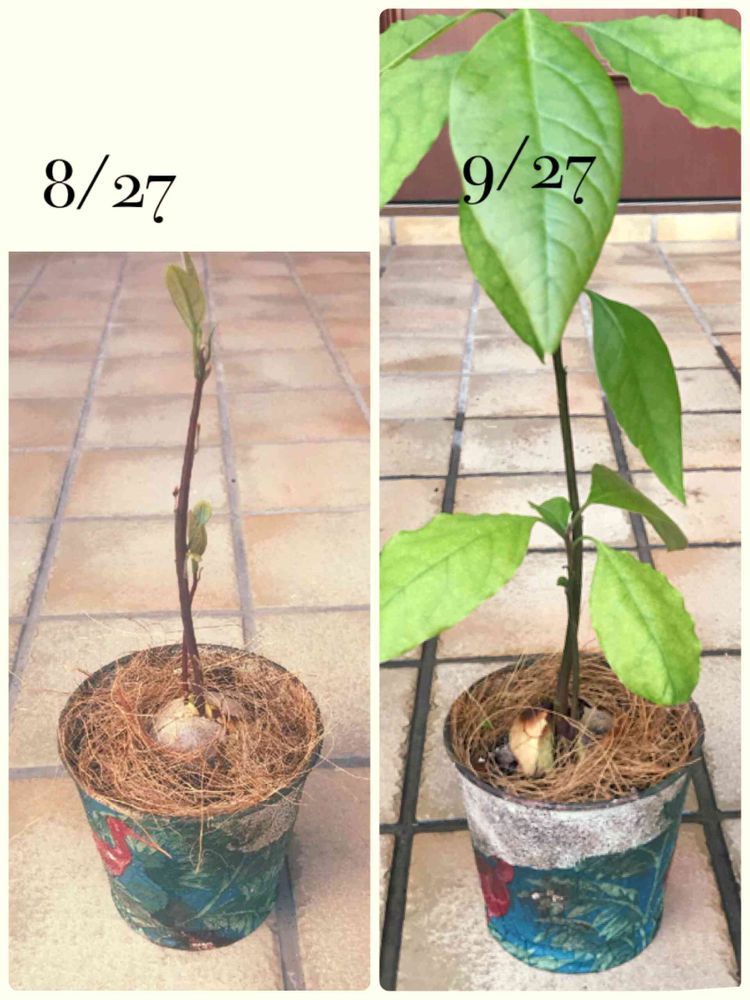 爽やかな朝です。アボカド 1カ月後 すくすくと育っています( *ˊᵕˋ* )