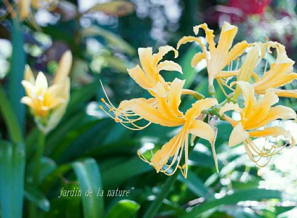 黄色い彼岸花が植えた覚えの無いところに咲き