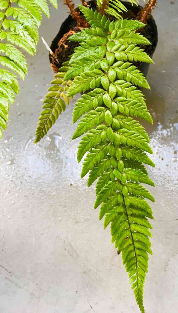 日本では希少なシダです。野生的なフォルムがどうしても気に入ってしまい中国産のものを手に入れました。国内では鹿の採食と人による盗掘で絶滅危惧種に指定されておりますが、なかなかどうしてどんな育て方をしても問題の起きない屈強なシダだと思います。