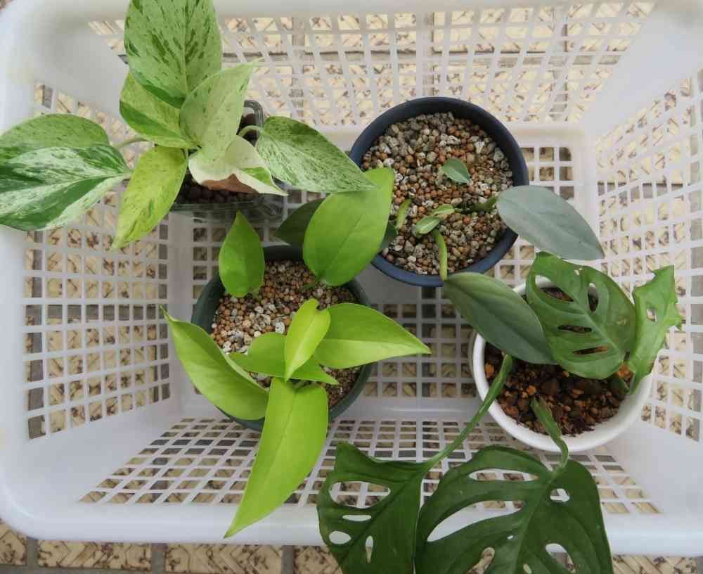 挿し芽で増えた ポトスマーブルクイーン、ポトスライム、フィロデンドロンシルバーメタル、マドカズラをあげることにしました。