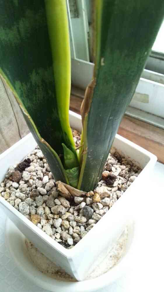 ホムセンで無造作に売られていたお安い裸苗を土にぶっ挿してから幾星霜…今までウンともスンとも言わなかったサンスベリアさんが突如やる気を出してきました。いきなり新葉が3枚くらい出てます。