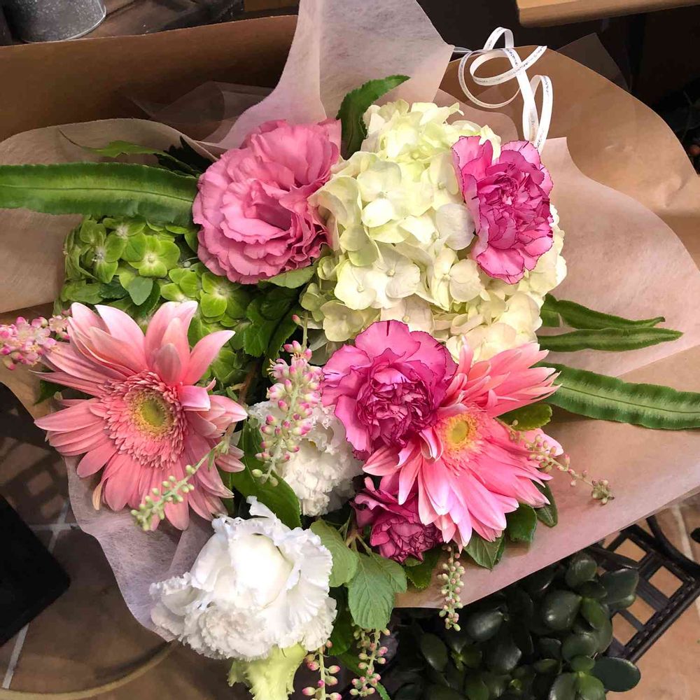 明日は画像のピンクのガーベラ「ソープ」が入荷しますよ〜🎵