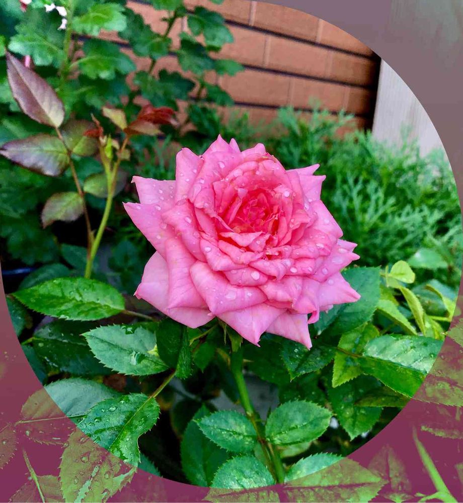通り雨に打たれても、健気な風情のミニバラ🌹