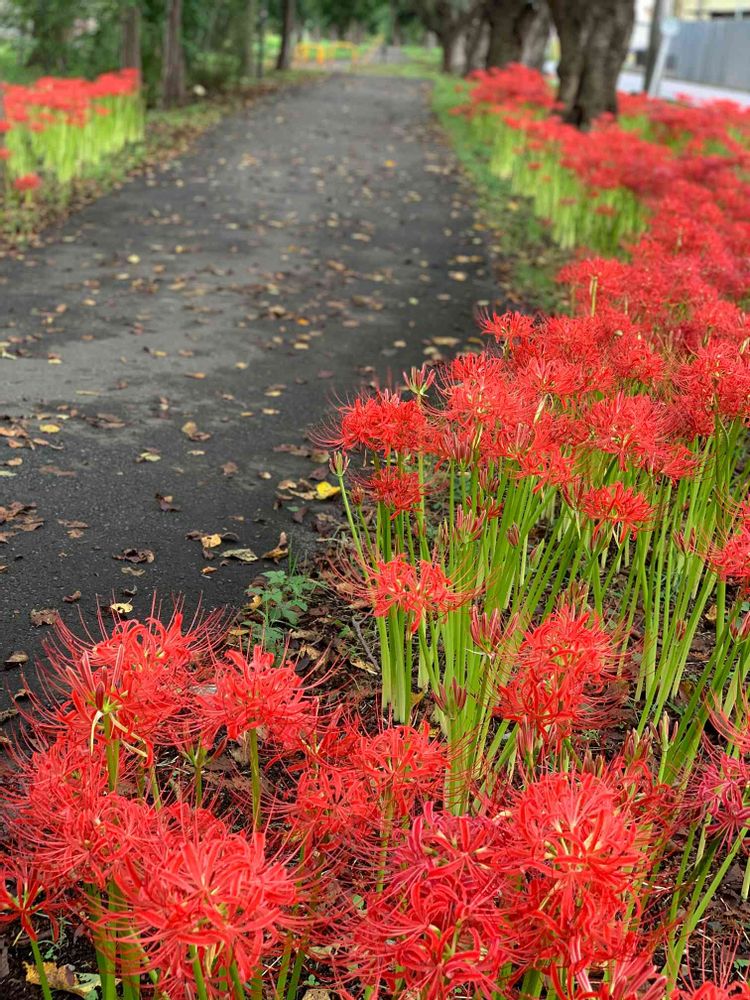 二和園に入る道の所に彼岸花の小道がありました。とっても綺麗だったので、二和園に車を停めて少しだけ散策。