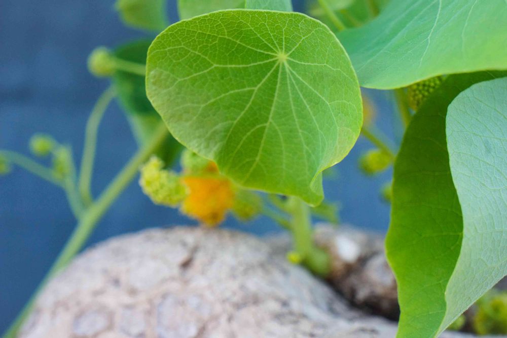 蓮の葉の様な水をはじく丸い葉も可愛いお芋です。