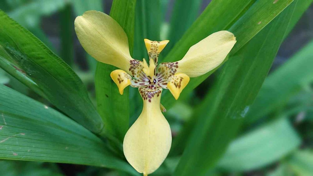 密かに?あちらこちらに咲いてますよ😉アヤメ科のようです♥️