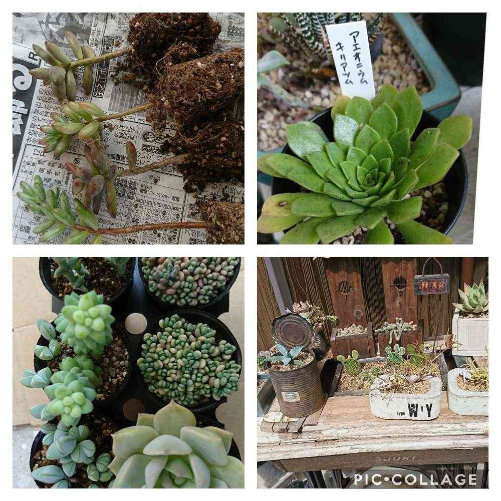 今日は西予市(愛媛県)であったマルシェにお邪魔しました。古民家カフェで多肉もおしゃれでした❤️帰りには中山のフラワーパークで多肉get🍀左上は一個30円。右上はアエオのキリアツム100円😱左下は地元の多肉屋さんOne Jackさん。