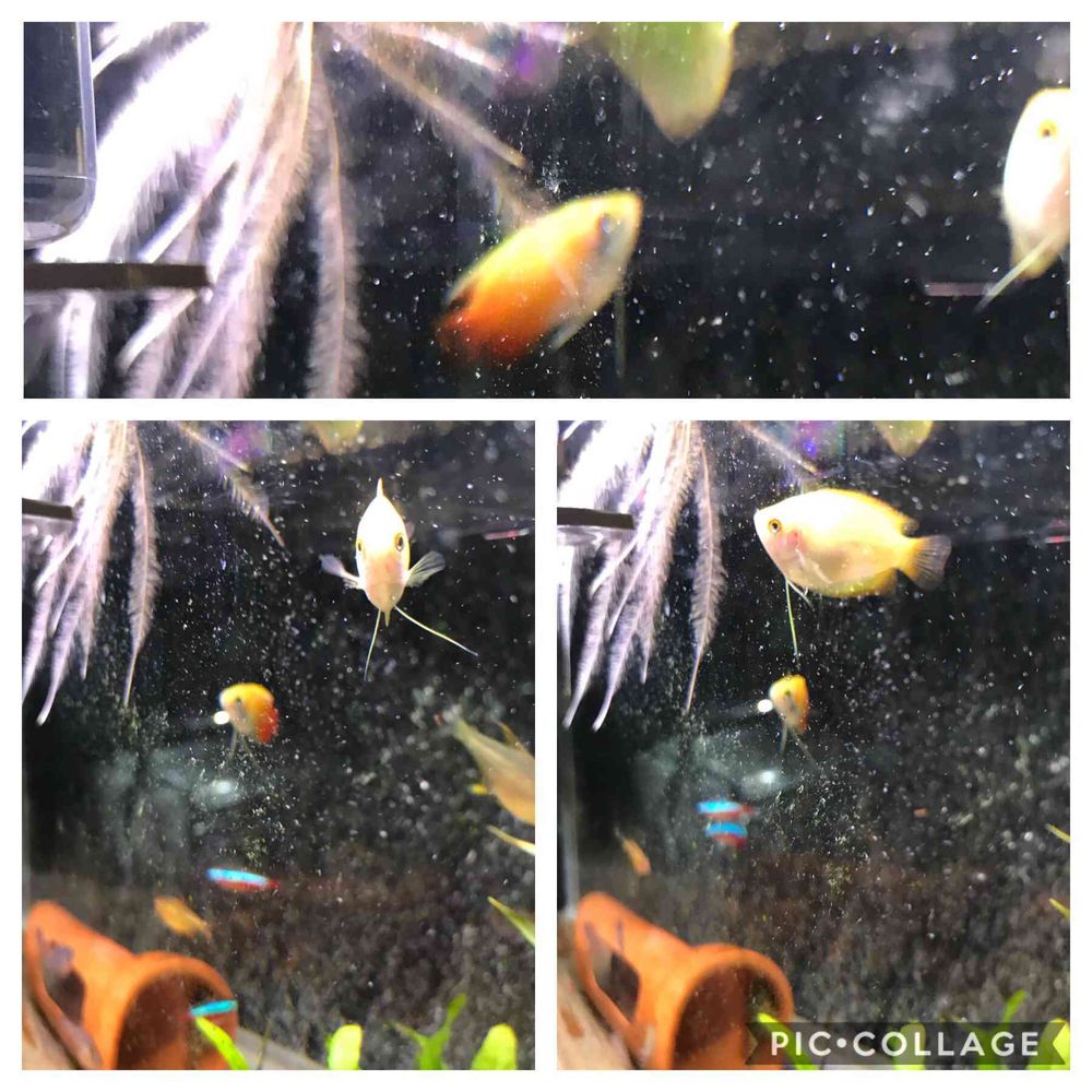 上の🐠顔の下に刺青みたいなのが出てきて、調べたら繁殖期に雄に現れるらしいが、雄が、卵を守る泡みたいな巣を作るためには、水草が必要とか、マツモに住んでいたのに餌がマツモに絡みつき水が汚れたので外の、鉢に移動、代わりに一度退場してもらった、ホテイアオイの小さいのを入れてみたら、早速偵察に現れた🐟達白いのが雌で自分で産んだ卵を食べちゃうらしい、雄が卵を守る役目だとか、今日仕入れた情報🔰