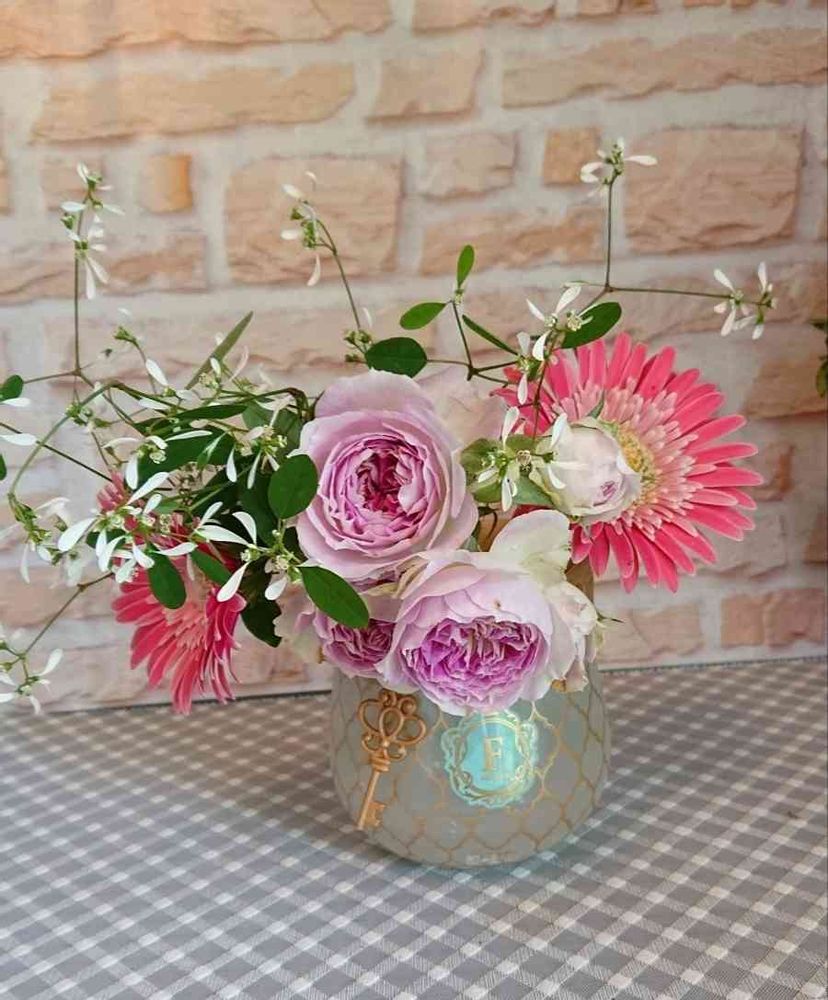バラを入れて容器も変えたので短くしたのですョ✂️