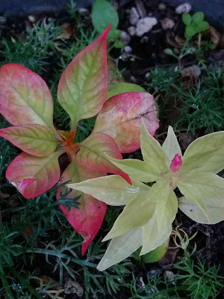 あらっ? 育ったら赤い葉っぱが薄くなって来ましたね。お隣さんの白も珍しい