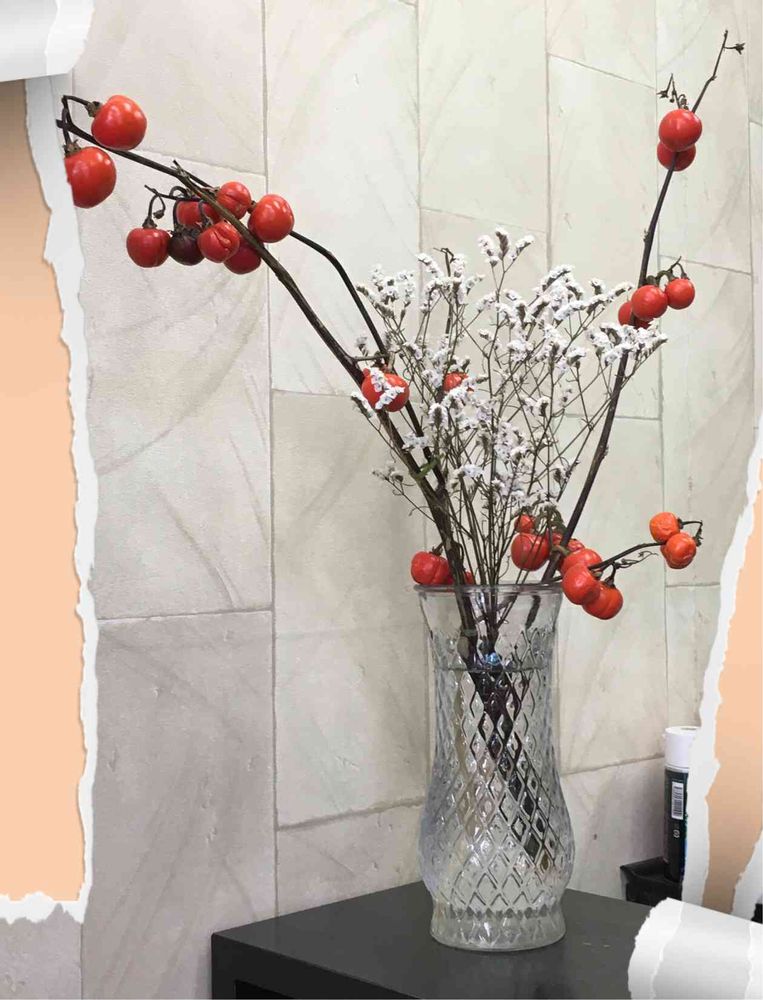実は熟すと白から橙色〜赤色へと変化していくので 1本の茎に橙黄色と赤色の果実が付いているように見えます。一見ミニトマトのようにも見えます。