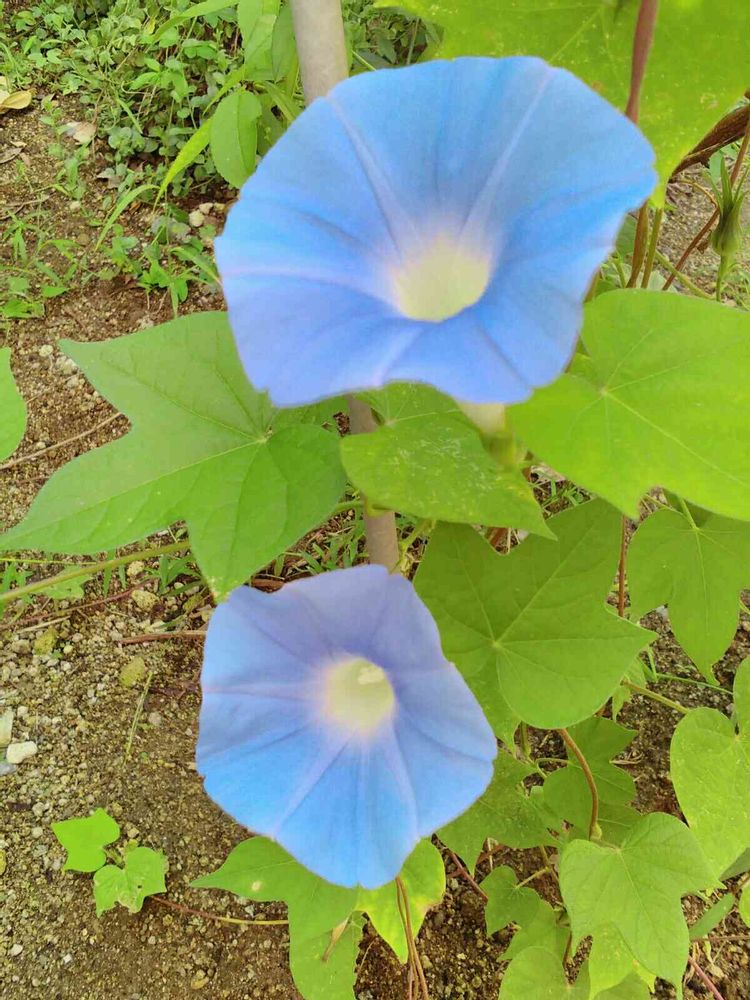 夏の花ですが、うちの庭の朝顔はこぼれ種がほそぼそと、あちこちで咲きます❤