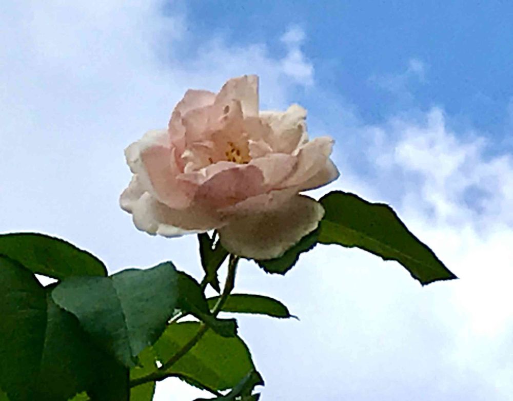 高〜い位置でポツポツ返り咲いています。秋はピンクっぽいマダムアルフレッドキャリエール🌹かなりシュートが伸びて暴れています😊