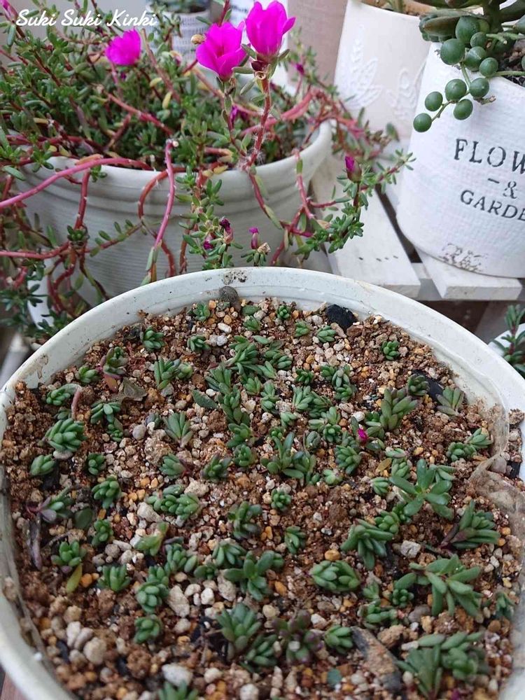 ポーチュラカピンキーポロリポロリと取れた子を挿し🌱これで冬越し来年又花を咲かせてくれますように🌼