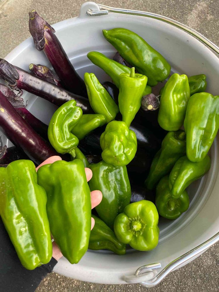 トマトが本業だけれど、趣味の範囲を超えてるな。農家はやっぱりすごい👩🌾このバケツの下には長ナスじゃない普通のナスがずらりと入っていたよ🍆🍆