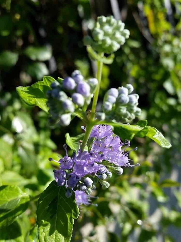 カリオプテリスサマーソルベット咲きました😁🌺🍀葉も斑入りでお洒落な感じです☺
