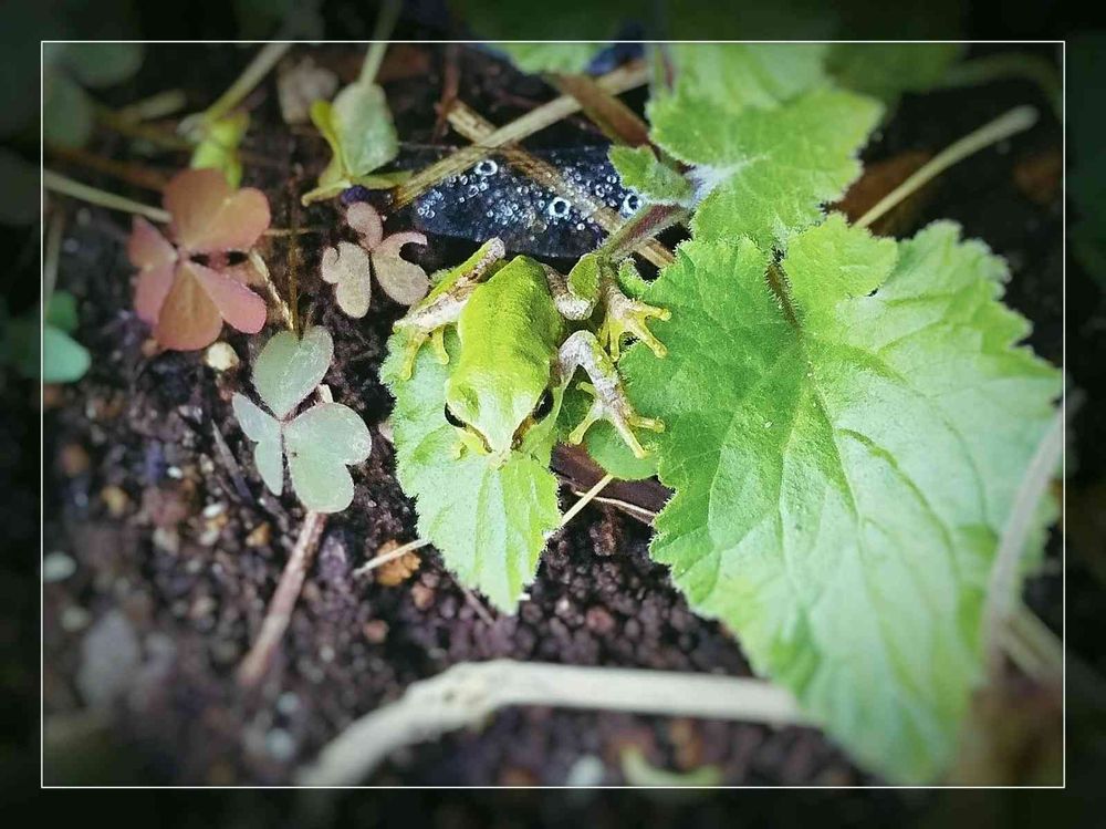 畑にアマガエルさん。