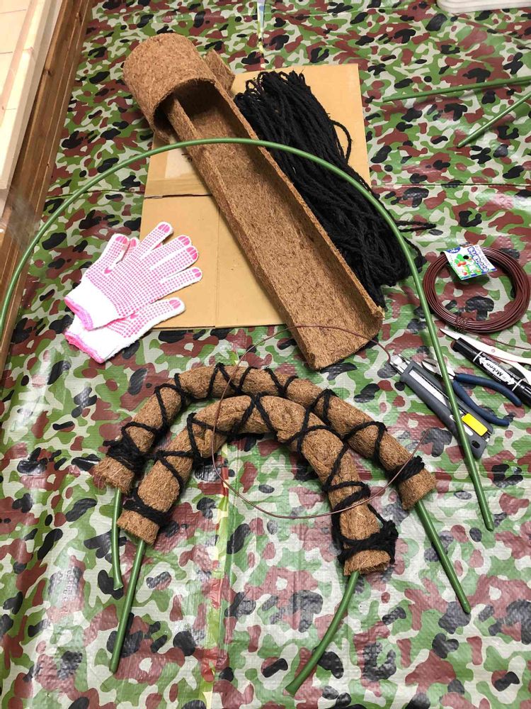 そのU字型のワイヤーにココヤシマットを巻いたものに黄金かずらと初雪かずらに巻き付かせてそれぞれのリングを作られるんですか?💦