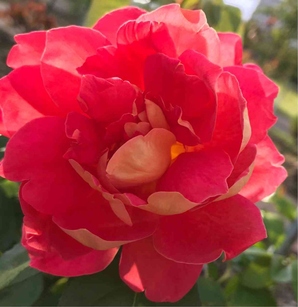 コンデサ デ サスタゴが咲いていました。表弁がローズ赤で裏弁が黄色です。とても綺麗な薔薇です。