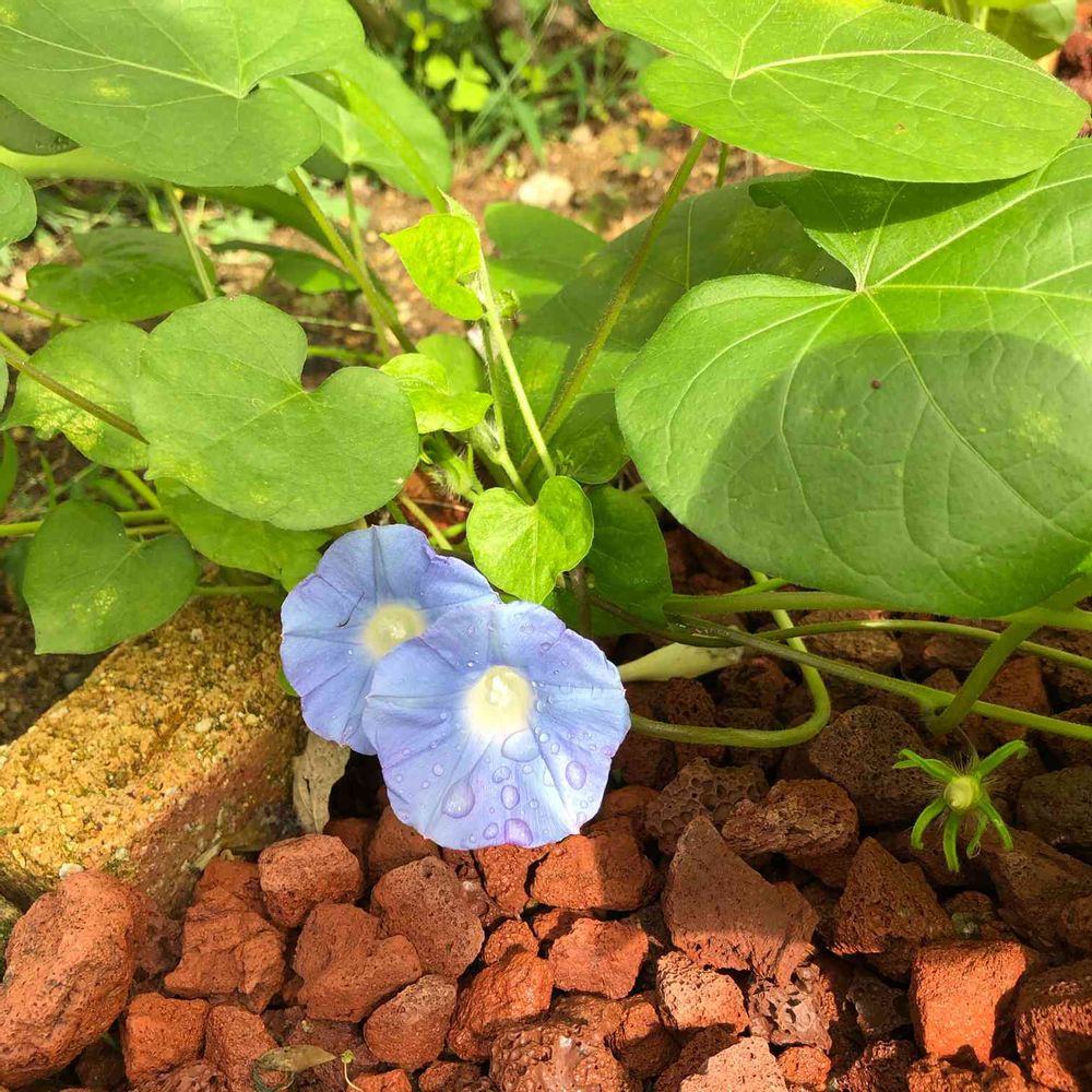 知らないうちにつる性の朝顔みたいな葉っぱが🌱 いつもはびこって困っている🌱とは違うので、抜かずにしばらく様子を見てみることに。