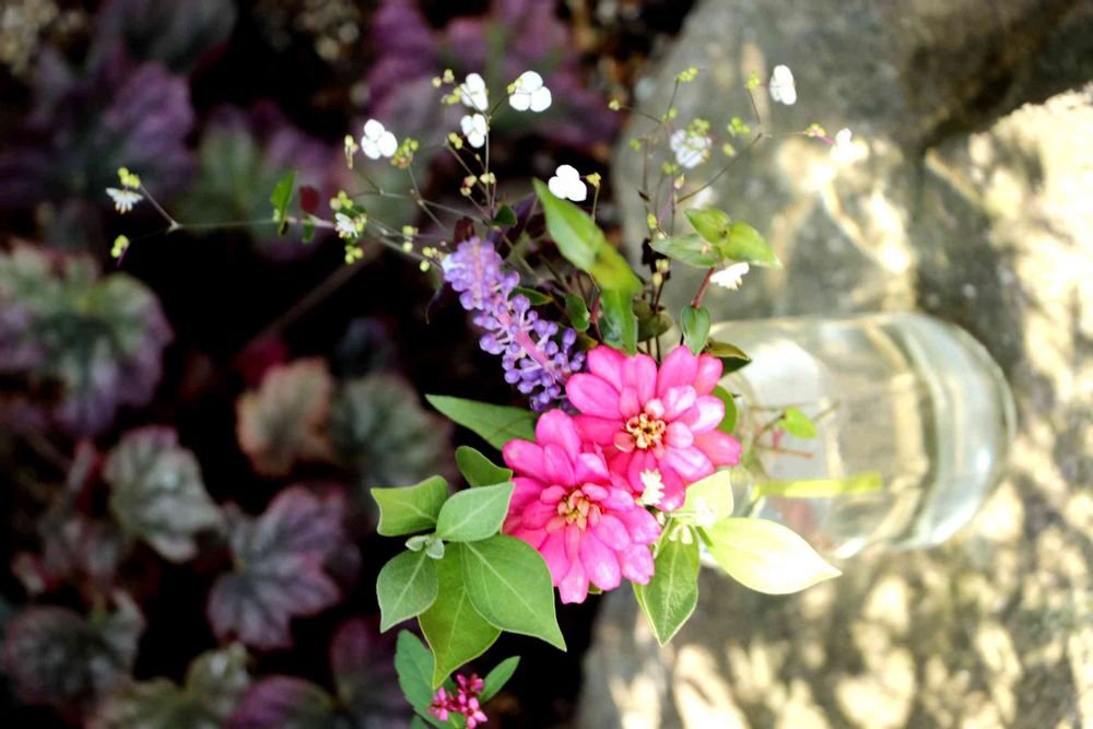 いつも庭仕事しながら、庭の花を切って、家の中に持って入るまで瓶に挿しておきます。我が家はお花がモリモリ咲いてるわけではないので、ほんの少しだけ☺️