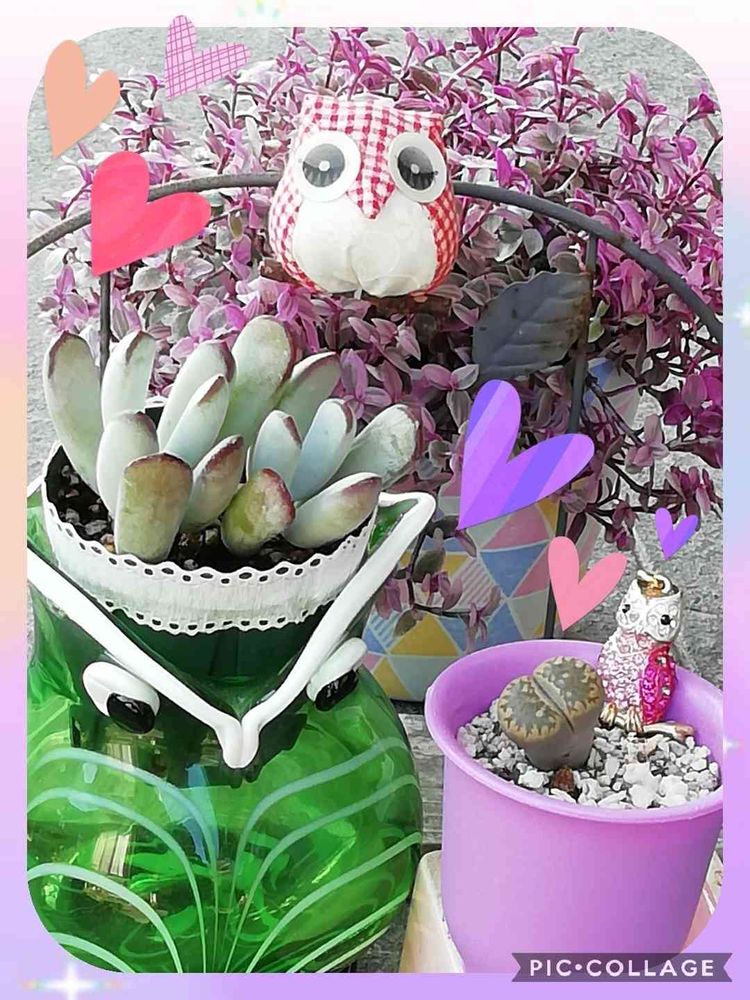 昨日は🦉祭りだったから、福の付く多肉ちゃんと🦉でharuhiro ちゃんの体調良くなる様に願いを込めて参加したよ😊❣️🎶