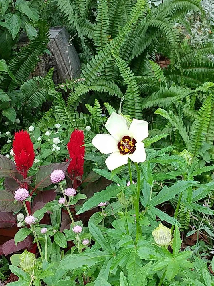 ハイビスカスの華やかさとは違い、自然な草花のような姿がこの花壇に似合っています🌿🌿🌿