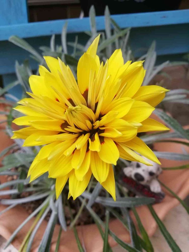 曇り空です。黄色のガザニアが咲き明るくなりました💛