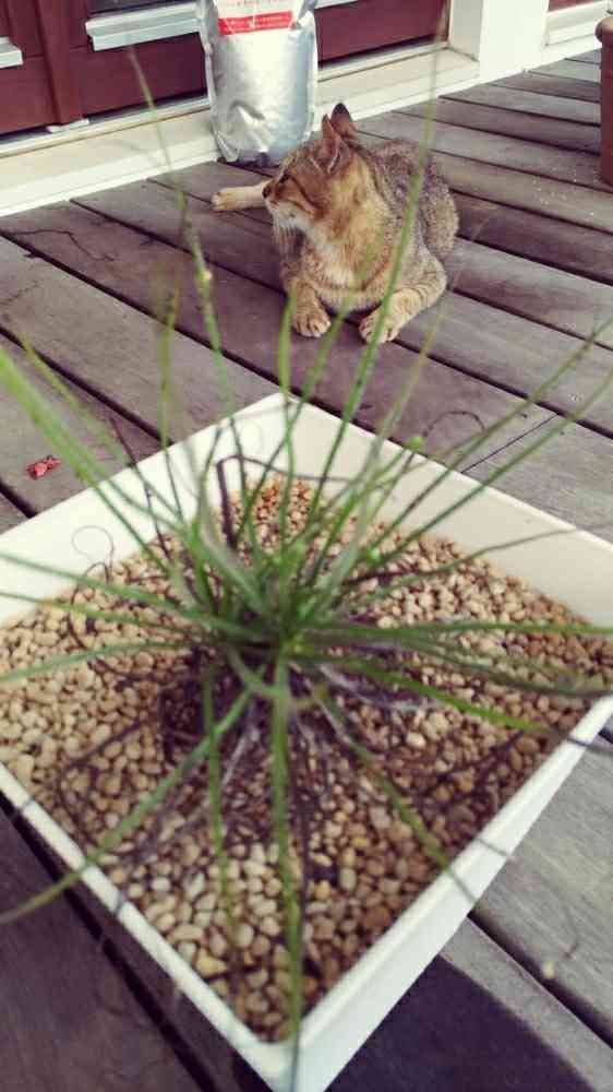 テラスで作業をしてたら野良猫が遊びに来たんで、ドロソの匂いを嗅ぐ映像を撮ろうと・・