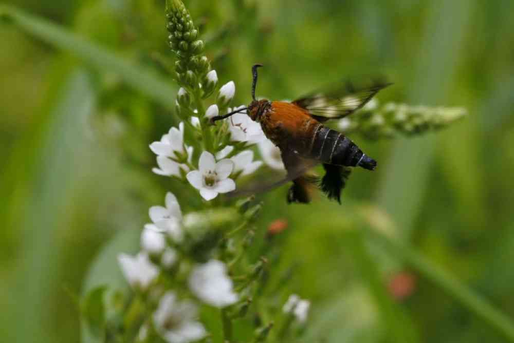 スズメバチより少し小さい位でした。花の蜜を吸うのはあまり逃げないですね。