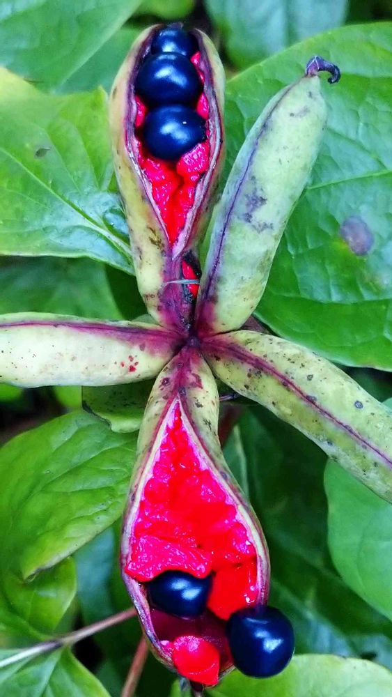 お花は普通に芍薬なのに、実が弾けると、あっ❕と驚くその姿😆