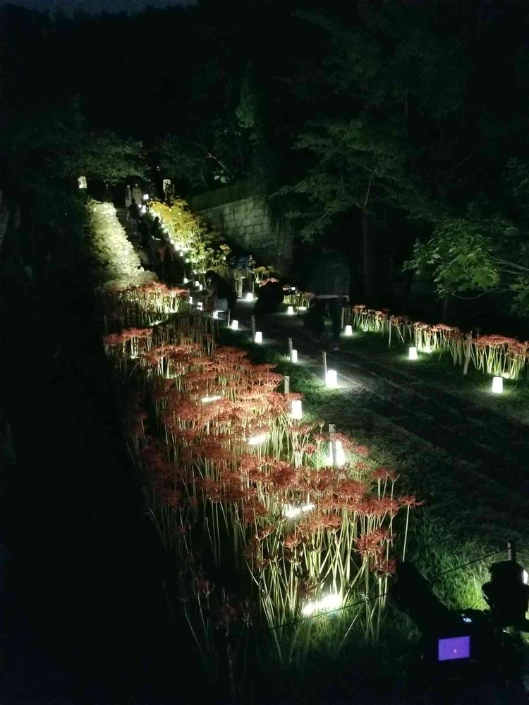一夜限りの彼岸花のライトアップ