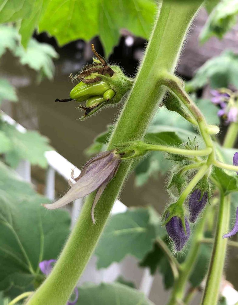 あの素敵な色の可愛いお花💛💜から黄色い大きな実がなるのが楽しみよ😄